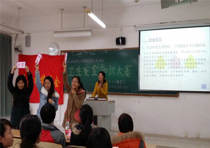 公寓安全一直是学校老生常谈的主题,更是楼栋工作的重中之重,而生活卫生常识是健康生活的保证。为了提高同学们公寓安全意识,增强同学们对生活卫生知识的了解,创建安全和谐的北六公寓环境,北六楼管会于2014年11月28日下午4点成功举行“北六公寓安全卫生知识竞赛活动”。到场的嘉宾有beat365官方网站党总支雷菁副书记、公寓管理科科长冯湛老师、北六楼栋管理主任郝颖老师、北六宿管阿姨冯祖惠、大自委公寓公寓社区中心宣传策划部的2位干部。