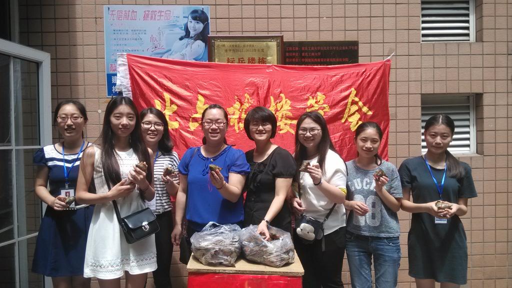 2015年6月19日是端午节的前一天,北六栋楼管会为大家发放了节日福利,上午11:30时beat365官方网站党总支张筱璐书记与北六栋楼管会主任郝颖老师到北六栋门口与楼管会干部们一起给同学发放100个粽子,以表示对同学的节日祝福。