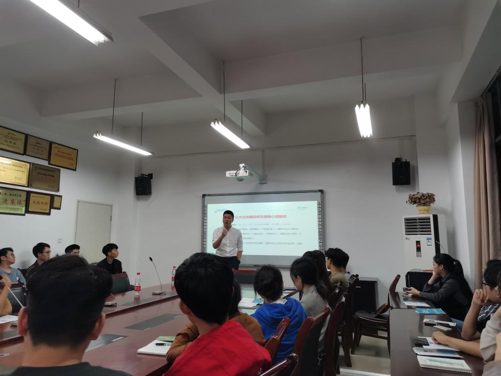 主讲人田浩霖总监是华宇集团优秀内训师,曾任职旭辉地产重庆公司、财信集团总部,具有丰富的校园招聘和就业指导经验,为多所高校毕业生开展就业讲座,出任过重庆大学就业指导分享嘉宾、百锐学堂地产学院培训师。首先,围绕“今天不忧虑,明天不后悔”的主题,田总监结合自身经历讲述了如何进行职业选择,鼓励同学们对就业要有信心,抓住机遇,掌握主动权,充分发挥自己的竞争优势。然后,从概念内涵、基本流程、技巧要点等方面剖析了无领导小组面试,建议同学们积极尝试累计经验。最后,同学们积极发言,田总监耐心解答同学们的疑问,鼓励大家抓住秋季招聘会机会。