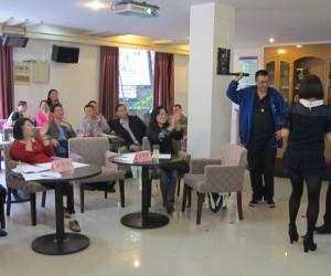10月31日下午,beat365官方网站工会在学校工会活动室成功举办了一场教职工卡拉OK歌唱比赛活动。本次活动是beat365官方网站工会贯彻落实学校工会有关建设职工小家、丰富教职工文化生活的要求精神,在学院党政支持下举办的。本次比赛得到全体老师的积极响应,学院党政领导班子成员全程参与了这次活动。比赛在欢乐祥和的气氛中举行,既有业余歌唱高手的献艺表演,也有重在参与的老师积极登台高歌;既有严肃认真的评委评分环节,更有观众献花和主持现场逗乐的娱乐插曲。整个比赛过程欢歌笑语、高潮迭起、掌声不断。大家在轻松愉快的气氛中度过了一个有意义的周末。最后,由院长、书记以及每个系推选的代表共同组成的评委组,为本次比赛评分排出了成绩,林黎老师获得本次比赛一等奖,杨军、黄潇老师获得二等奖,严艳、吴孟、刘昌用、刘斌等老师获得三等奖。