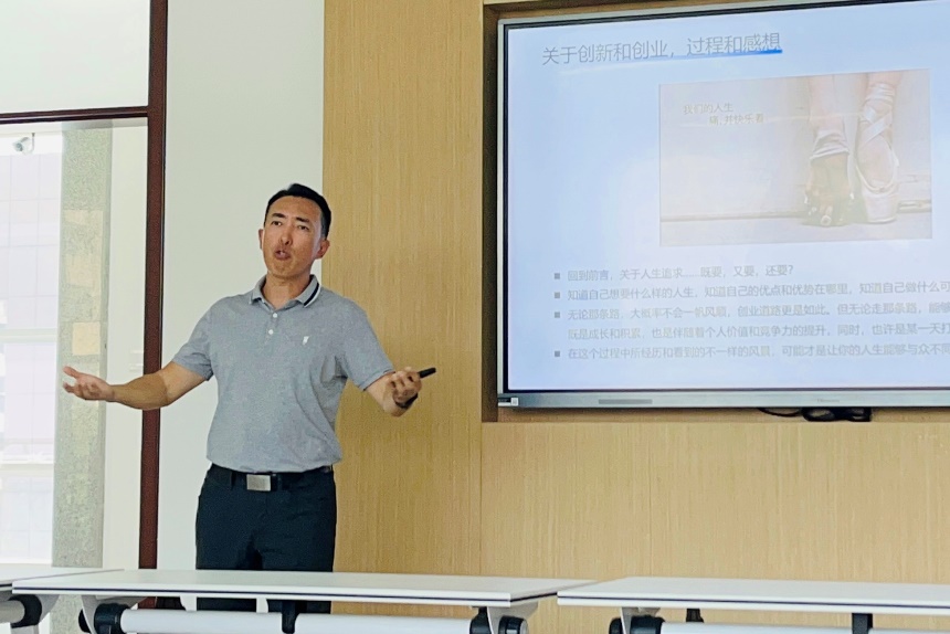 赵龙从亲身经历出发,围绕个人在求学、就业和创业过程中的实践和探索,与同学们分享了其中的经历经验,心得和教训。报告内容分为:校园时代的挑战和心得,职场生涯的经历和收获,创新创业过程中的感想三部分。报告中,赵龙介绍了自己的求学求职历程及自己公司的发展历程,他特别强调在学生阶段要做好积累,重视理论与实践的结合,大胆尝试。同时,赵龙还分享了他在创业过程中遇到的一些挑战和困难,并介绍了在创业过程中需要具备的创新思维和创业精神。他鼓励同学们要敢于尝试新事物,不断学习和提升自己的能力,不畏失败,勇于创新。