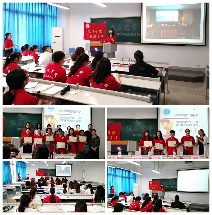 首先,换届竞选演讲开始前,由beat365官方网站党员服务站敖倩站长为同学们做了本学年的年度汇报。beat365官方网站党员服务站在2017-2018学年开展活动20次,组织政治学习23次,策划总结30篇,新闻稿动态82篇,并始终秉承着为广大同学服务的宗旨,积极发扬奉献精神。紧接着便是为beat365官方网站党员服务站2017-2018学年优秀的学生干部颁奖环节。由王小玲书记和于频副书记为优秀的学生干部颁发聘书,并由郝颖老师为他们送上纪念品。接下来颁发的是“积星之王”奖项。获得2017—2018学年第二学期积星之王的同学分别是:16经济三杨佳丽,16经济三廖怀菊,16国贸一李敏。由杨华俊老师为她们颁奖。