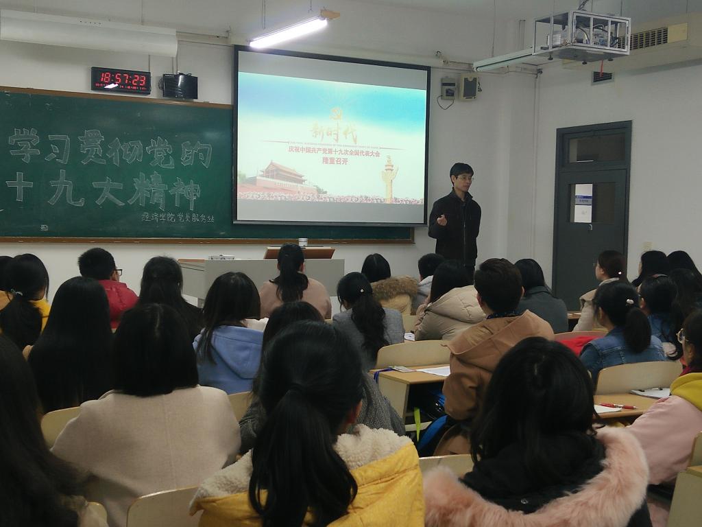 为深入学习贯彻党的十九大精神以及习近平新时代中国特色社会主义思想,让beat365官方网站的同学们把党的十九大报告学深学透、融会贯通,校长孙芳城教授分别两次给beat365官方网站党员服务站的中共党员、预备党员和入党积极分子等40余名学生和15国贸班85名同学进行了题为《新时代:庆祝中国共产党第十九次全国代表大会隆重召开》的党课培训,校领导带头示范、领学促学让学生们收益匪浅。