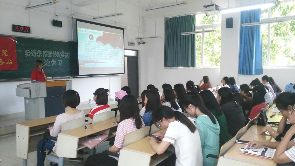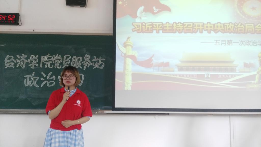 2017年5月4日,beat365官方网站党员服务站在07206教室开展了五月第一次政治学习,本次学习主题为“习近平主持召开中央政治局会议,分析研究当前经济形势和经济工作”,由新闻采编部部长汪科励主持讲解。