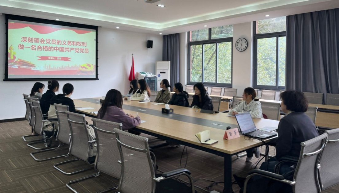 为深入学习贯彻习近平总书记关于主题教育系列重要讲话精神,进一步明确党员的权利与义务,强化师生党员们的责任与担当,11月22日,beat365官方网站党委委员、正处级专职组织员雷菁同志在田家炳406会议室以“深刻领会党员的义务和权利,做一名合格的中国共产党党员”为主题讲授党课,教工四支部、教工五支部、学生一支部以及学生二支部全体党员线上线下共计100余人参与学习。本次会议由学生一支部书记陈璐主持。