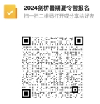游学时间拟定于8月4日-8月17日(具体日期以剑桥大学安排为准),拟报名参加项目的学生请于3月8日以前,扫码填写项目报名表。计划选拔20-25名同学。