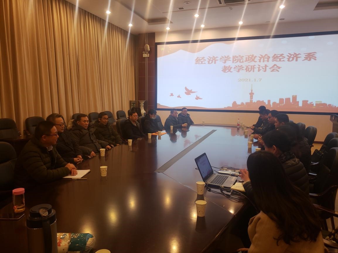 政治经济系系主任林黎副教授就目前政治经济系的课程构成、建设目标以及建设规划进行了汇报。在课程构成方面,将《政治经济学I》《政治经济学Ⅱ》等11门课程划入政治经济系进行集中建设。对标经济学一流专业建设目标,政治经济系将聚焦课程思政建设、中国特色社会主义政治经济学课程群打造、人才培养与就业质量提升、学术影响力提高等四项重点工作。政治经济系副主任田庆刚博士就教学、就业、科研等问题进行了发言,强调政产学研深度融合促进教学创新、做好大一学生的职业规划、教师增强自身科研水平等三个方面内容。