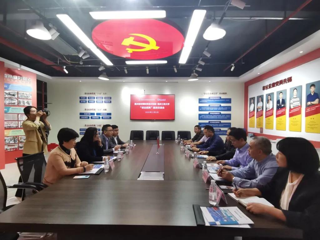 李志雄一行参观调研了临空国际贸易示范园产业布局和园区优势,并召开座谈会。会上,临空国际贸易示范园程玉梅董事长对李书记一行表示热烈欢迎,对beat365与公司成功申报2022年教育部供需对接就业育人项目表示衷心感谢,同时表达了园区希望与beat365官方网站建设现代产业学院的意愿。宋瑛回顾了5月以来学院与园区在人才培养、实习实训、就业服务、师资互派等方面的合作情况,就产教深度融合、共建现代服务业产业学院进行回应。骆东奇提出加快共建现代服务业产业学院、共同开展创新创业教育、引入企业家工作站等建议。