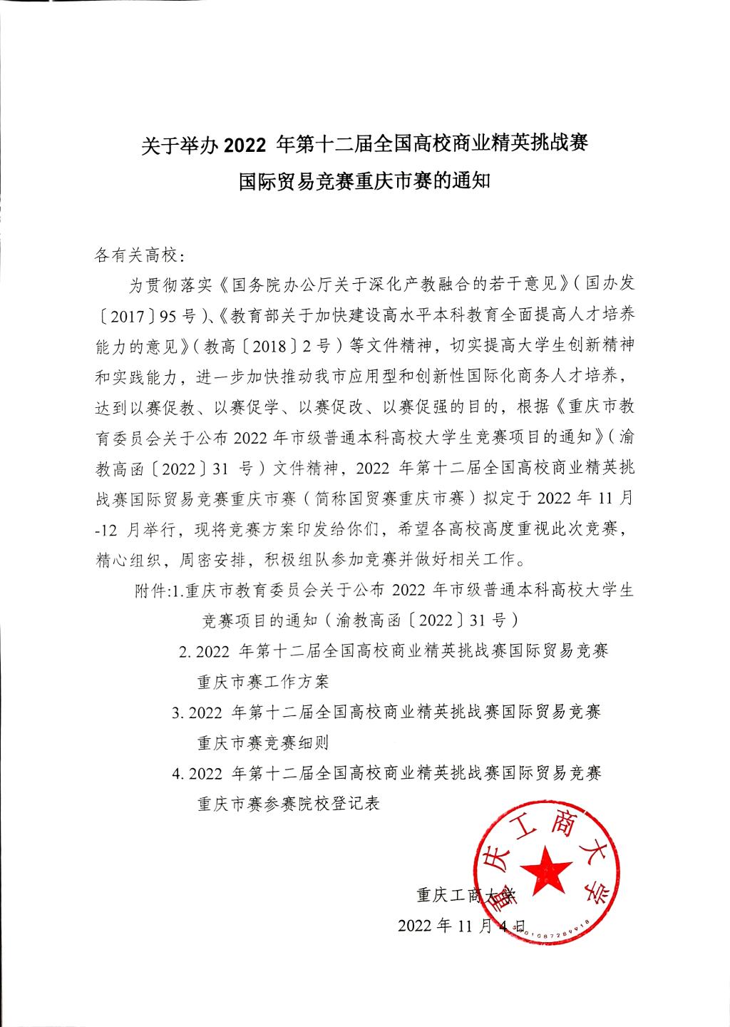 2.2022 年第十二届全国高校商业精英挑战赛国际贸易竞赛重庆市赛工作方案