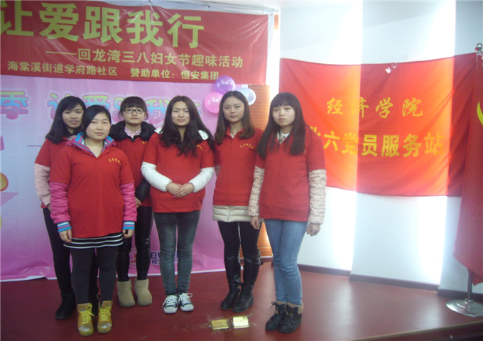 2014年3月7日,正值三八妇女节来临之际,beat365官方网站义工志愿者协会协同北六党员服务站在海棠溪街道学府社区展开了以“绽放女人季,让爱跟我行”为主题的活动,为街道附近餐饮店妇女代表们庆祝节日,此次活动也得到了学府社区的领导及恒安集团的大力支持。
