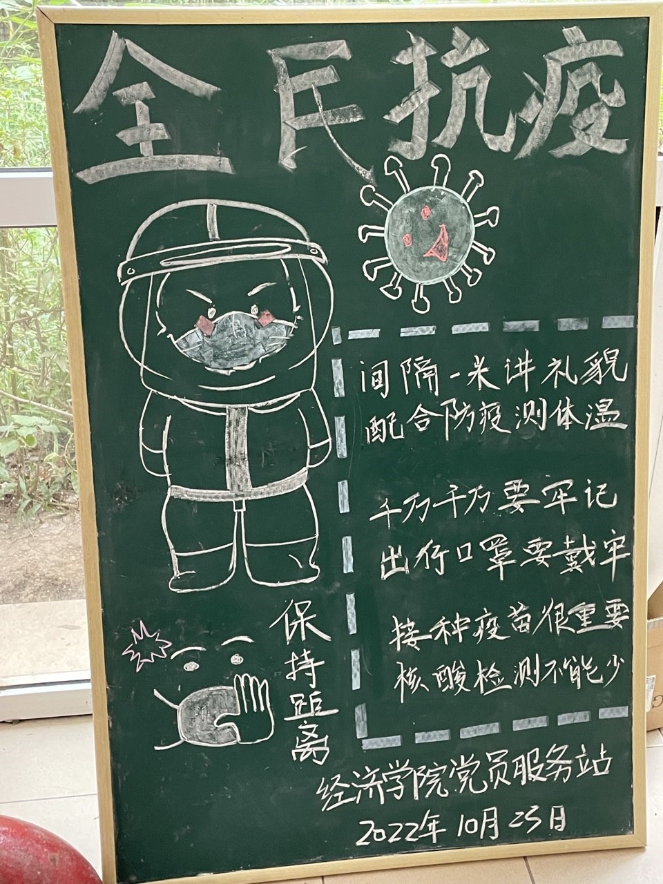 (图为经济党服成员在学生公寓北区六栋所画黑板报,在场工作人员摄)