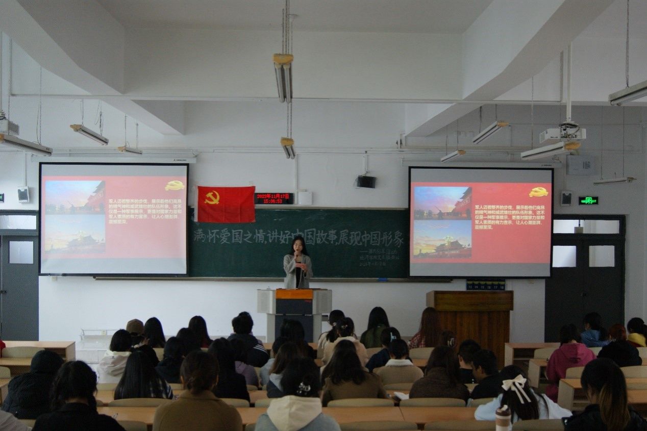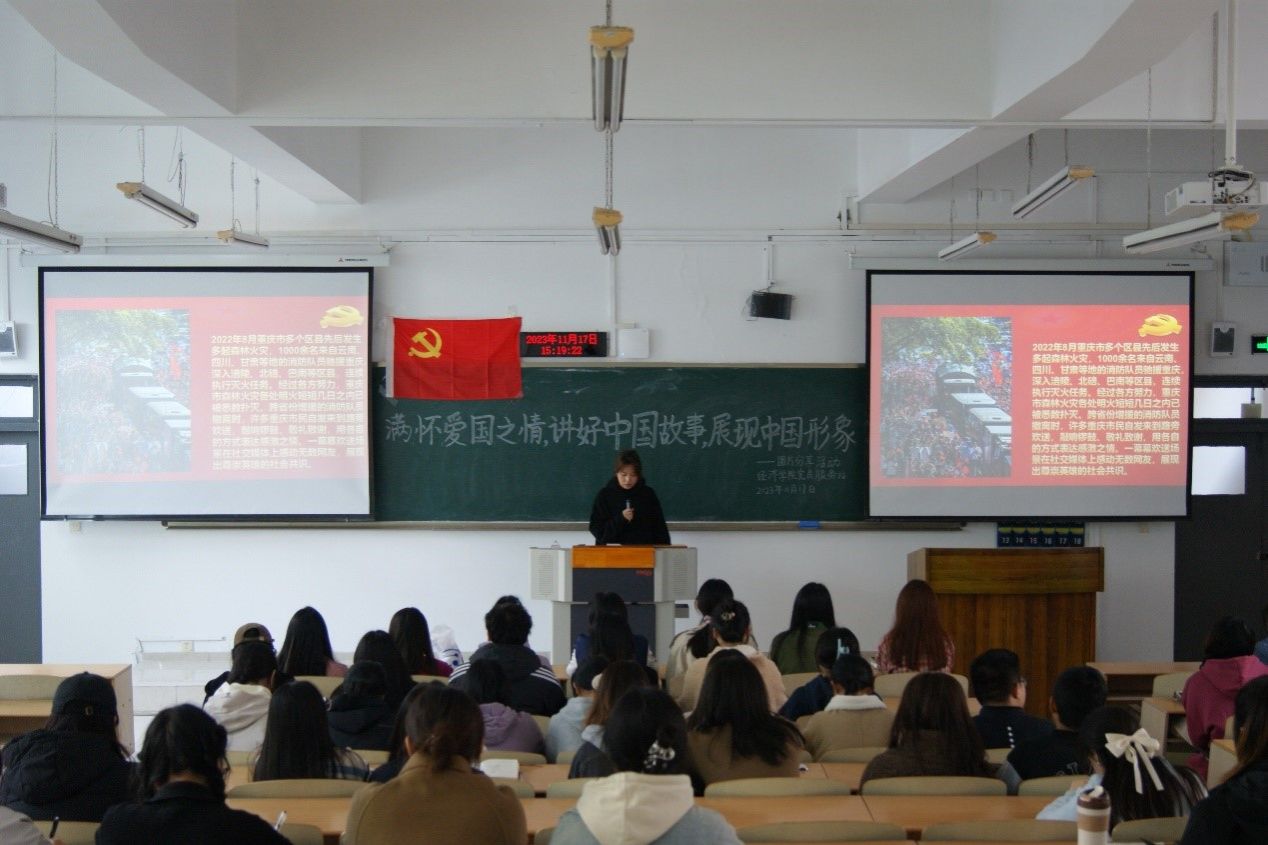 为进一步坚定站员们的中华文化立场,提高对中国故事、中华文化的关注度,beat365官方网站党员服务站于2023年11月17日下午15:00在博智楼07208举办“满怀爱国之情,讲好中国故事,展现中国形象”——图片分享活动,本次活动共80余名站员参与,由22国贸一班卢笛雅同学主持。