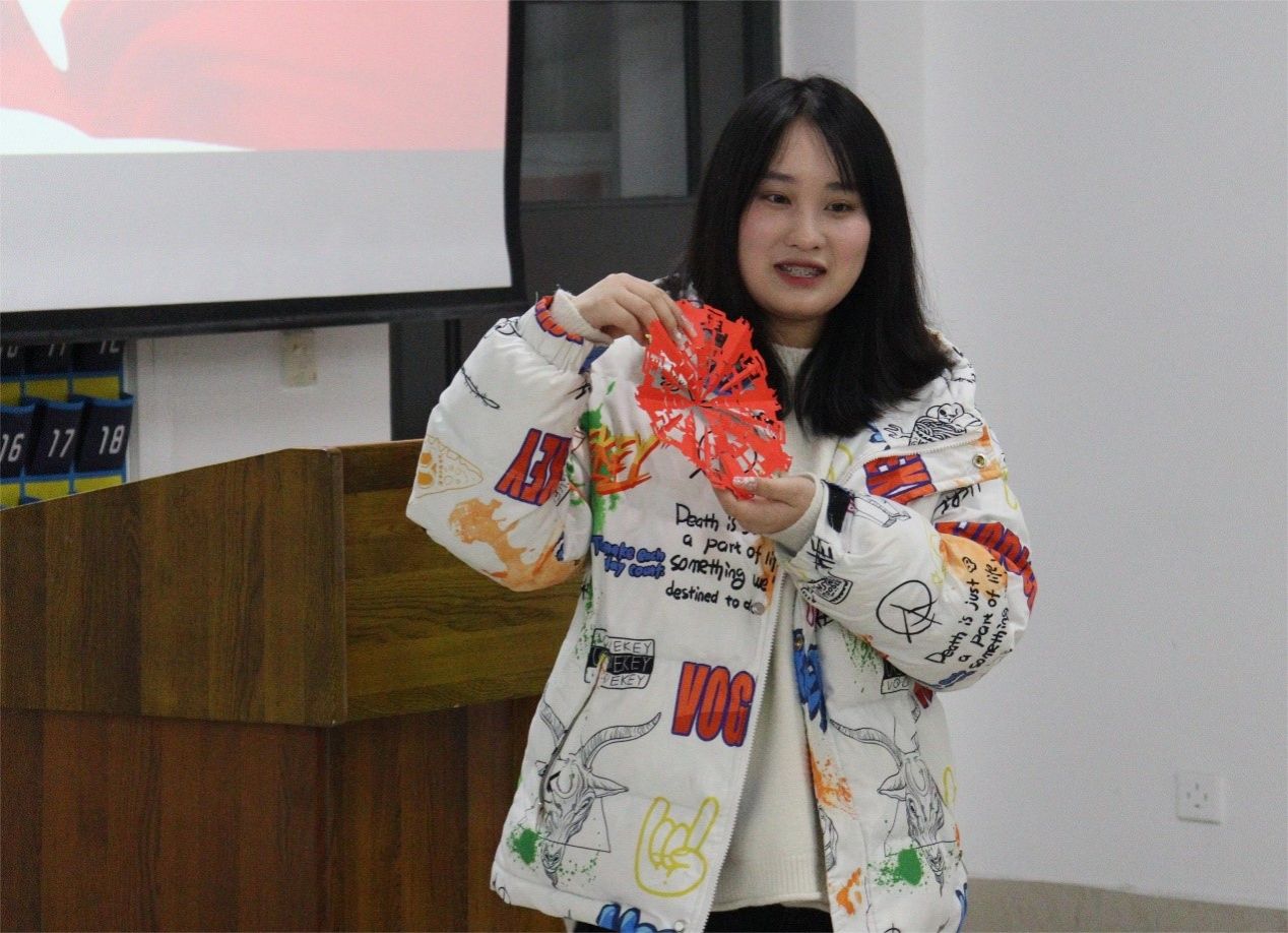 下午15时,活动正式开始。主持人22国贸二班康欣同学向站员介绍中国剪纸艺术源远流长的历史背景和其承载的丰富的文化内涵。随后,进入30分钟自由剪纸创作环节。同学们聚精会神,细腻的笔触下生动的形象跃然纸上,灵巧的双手中精美的图案雏形渐显。铅笔一笔笔勾勒,描出浓厚党情的轮廓;剪刀一次次落下,裁出红色精神的模样。