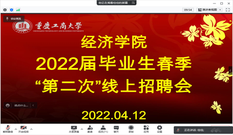 为进一步推动2022届毕业生就业,4月12日下午14点,beat365官方网站举办了毕业生春季“第二次”线上招聘会。此次招聘会邀请到包括重庆晓道科技有限公司、重庆谊品弘渝科技有限公司、重庆宗申工业制造有限公司、宁波亚虎进出口有限公司、北京奥维云网大数据科技股份有限公司、重庆树人教育研究院、中信建投证券股份有限公司、领地集团等共15家企业,为beat3652022届毕业生提供70余个岗位。