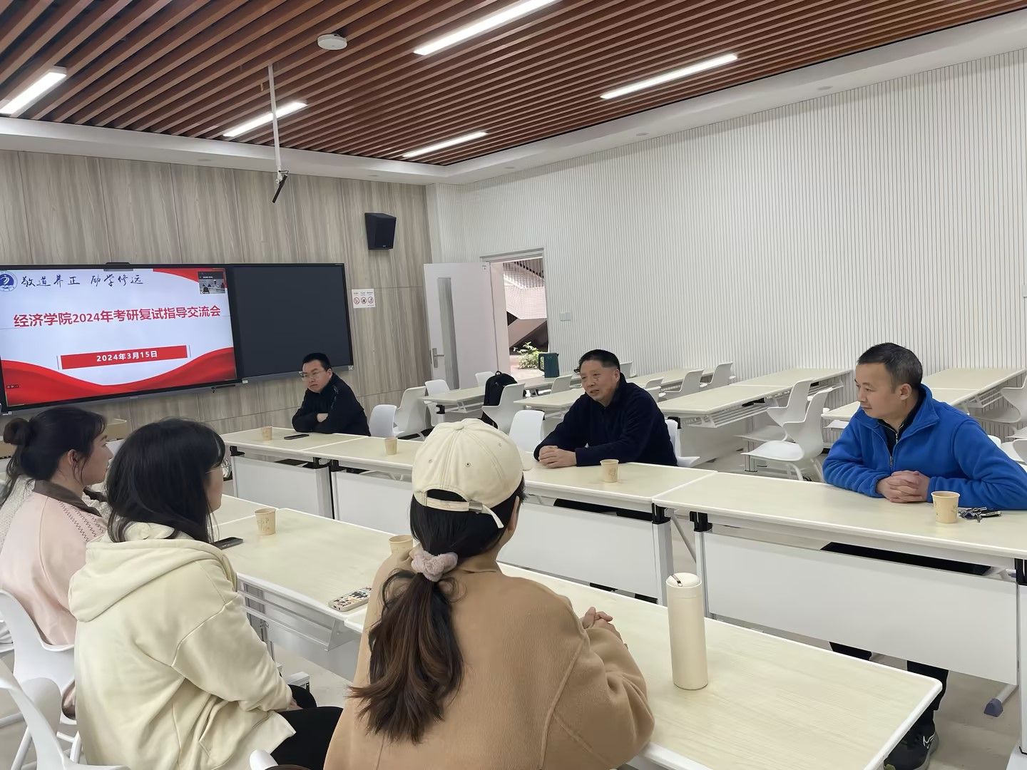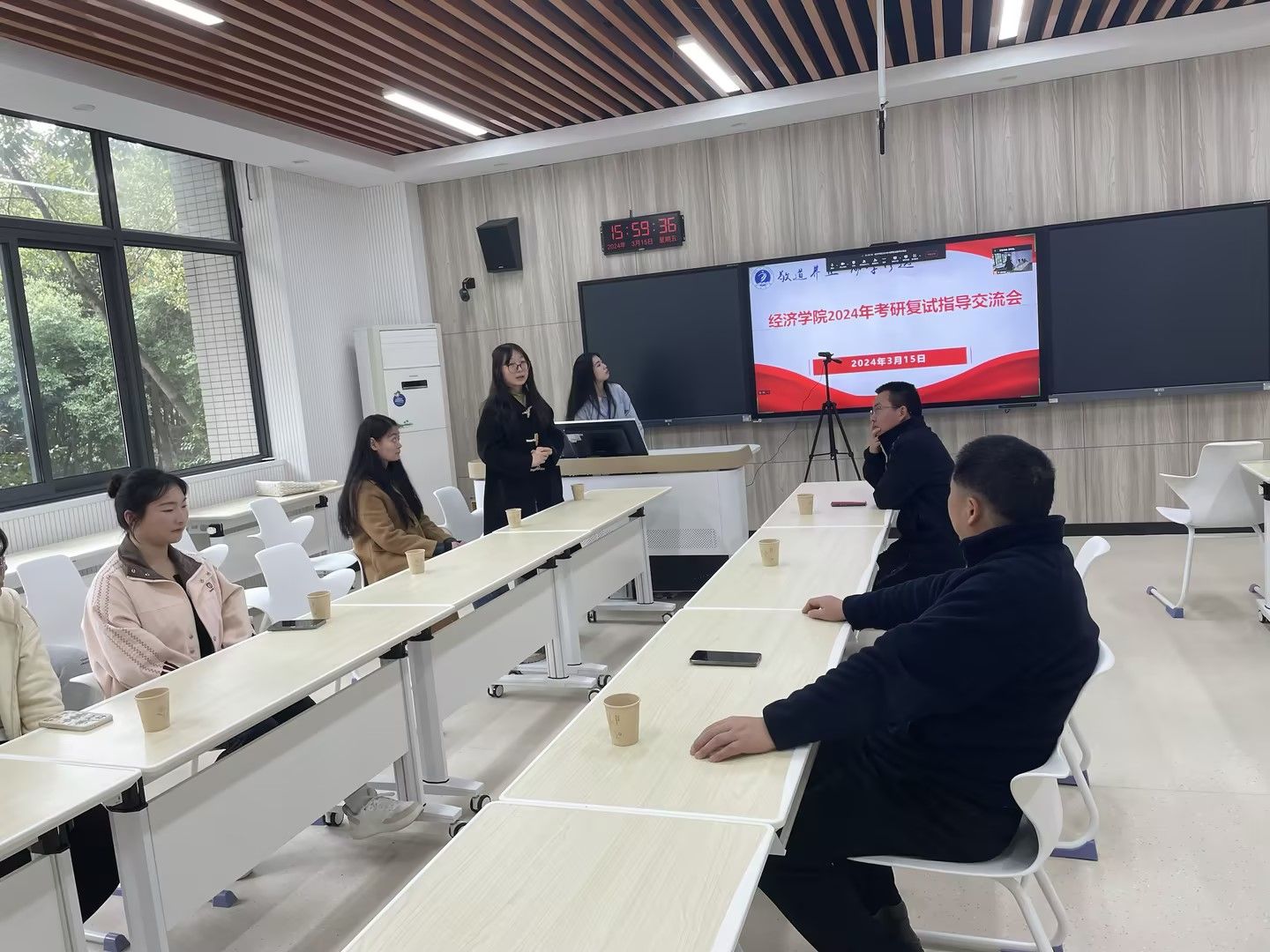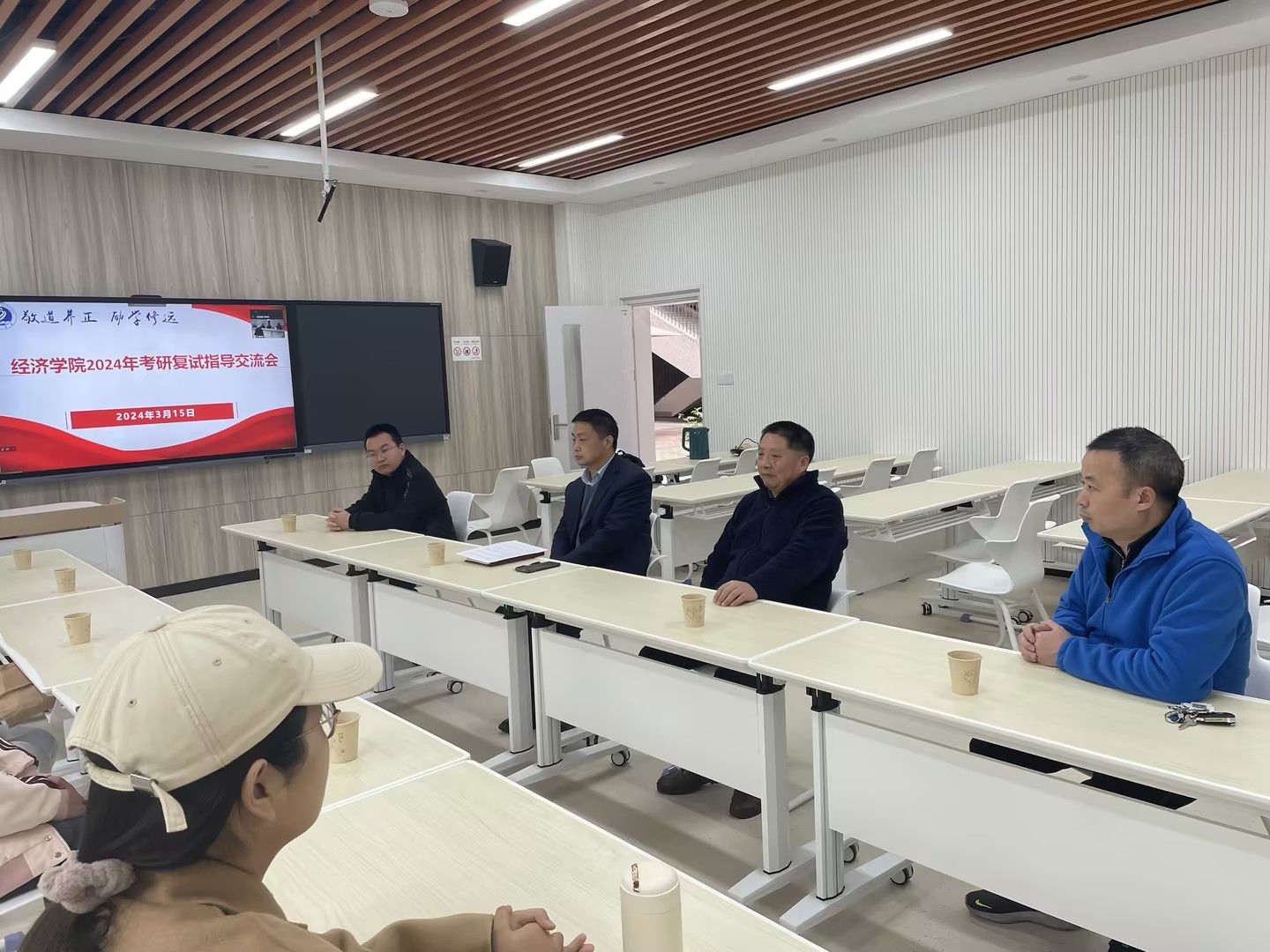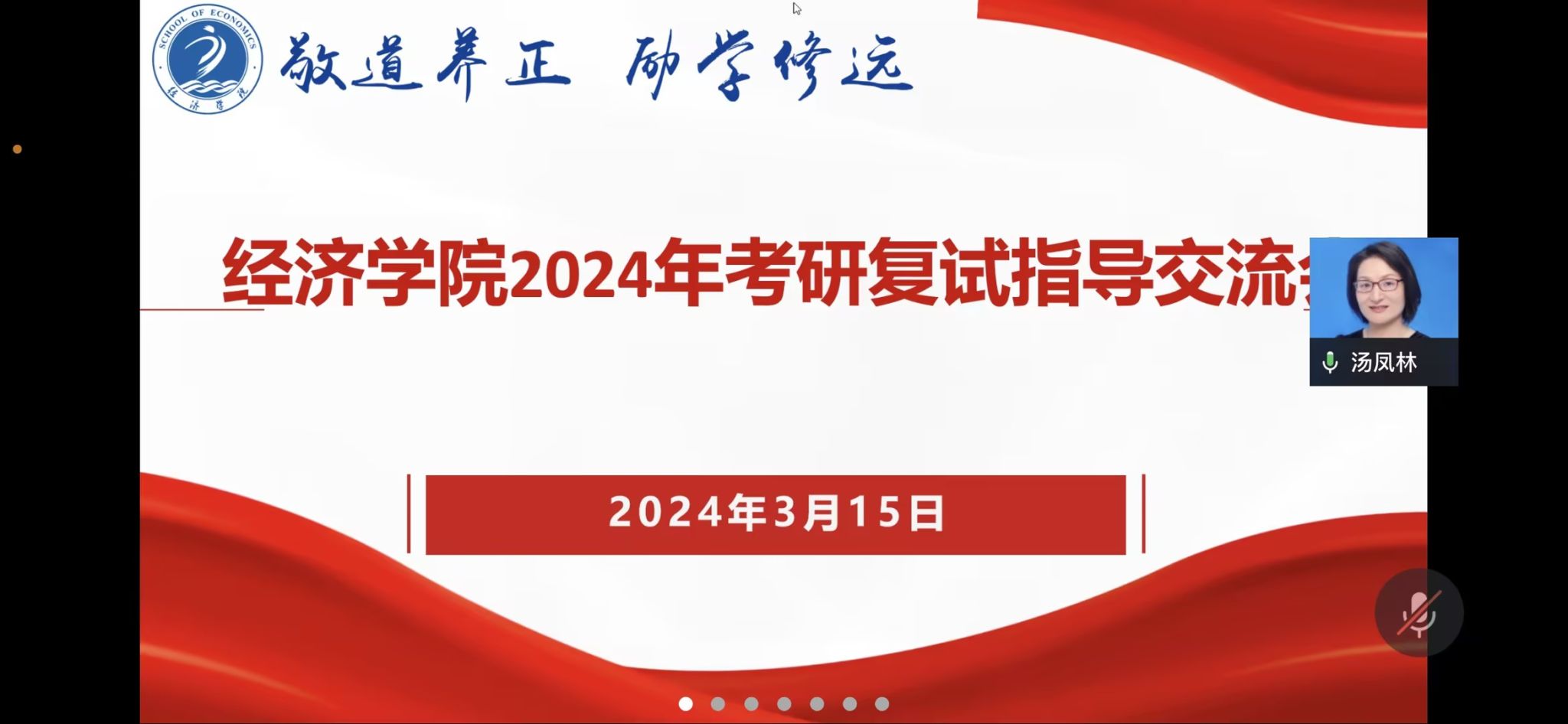为帮助2024届考研上线同学明确目标,掌握技巧,提高备考效率,从容面对研究生复试与调剂,确保2024届考研上线的同学研究生复试顺利进行成功录取,beat365于3月15日下午举办了2024年毕业生考研复试交流会。交流会采取线上线下同步进行,学院党委副书记白海龙,政治经济系唐路元教授,财政税收系副主任汤凤林教授,应用经济系郭鹏飞副教授,就业联络负责人喻智成老师以及2024届考研复试同学参会。各位老师从不同角度出发,围绕复试程序、复试内容、复试技巧以及院校调剂等方面进行了相关问题的解读和辅导。
