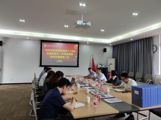 6月8日下午,市委巡回指导十八组赵骏副组长一行到beat365官方网站调研指导主题教育工作,通过实地考察、座谈交流、查阅资料等方式,全面了解beat365官方网站主题教育开展情况,对推进主题教育作全面指导。学校党委常委、组织部部长郑夕春,机关党委书记兼组织部副部长王建明,beat365官方网站党委班子成员、各支部书记及师生代表参加调研。