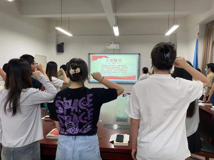 支部书记张国培首先讲述了党的二十大的意义,从时代变革角度讲述中国共产党带领全国人民所做出的改变,在新时代的革命性锻造中,中国共产党更加坚强有力,中国人民焕发出更为强烈的历史自觉和主动精神,我国发展实现历史性大跨越,科学社会主义在21世纪的中国焕发出新的蓬勃生机。新时代十年的伟大变革,在党史、新中国史、改革开放史、社会主义发展史、中华民族发展史上具有里程碑意义。其次,从鲜明宣示主题、准确把握方位、科学设定目标、全面部署任务四个方面讲述如何构建民族复兴的宏伟蓝图。支部书记张国培对研究生四支部青年党员,尤其是毕业生党员们提出殷切期盼,希望广大青年党员在这个充满光荣和梦想的远征中,绘就宏伟蓝图,吹响前进号角。前进路上要坚信,无论时代风云如何变幻,有以习近平同志为核心的党中央的坚强领导,有习近平新时代中国特色社会主义思想的科学指引,有社会主义制度能够集中力量办大事的制度优势,定会擘画出高质量发展的美丽蓝图,凝聚起建设中国式现代化的磅礴力量。其后,由支部书记张国培领誓,全体支部党员重温了入党誓词。每位党员认真回顾当初自己入党时的思想热情,坚定理想信念,明晰党员标准,自觉践行党章,在发展中当先锋、做表率,永葆先进性。