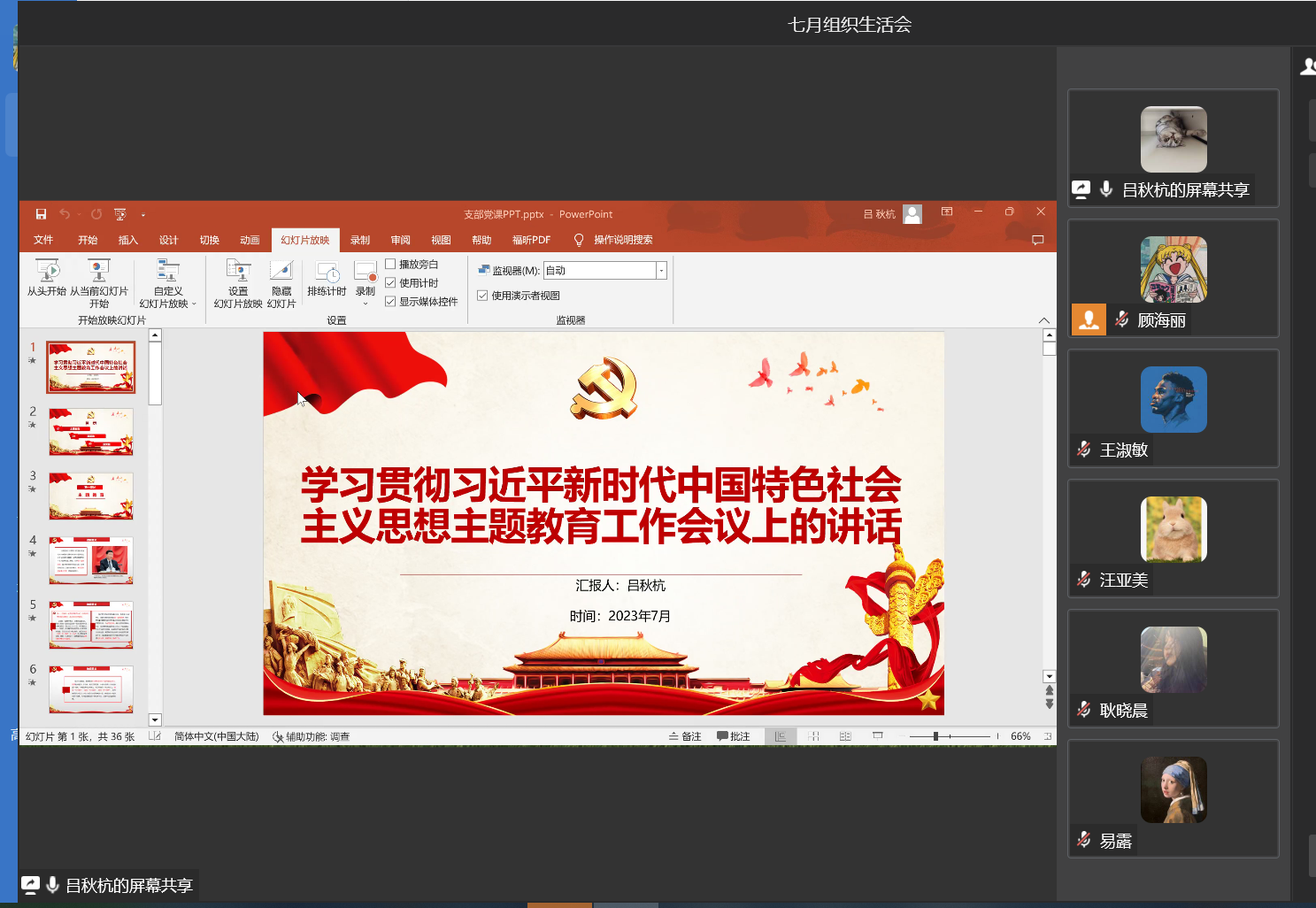 2023年7月21日,beat365官方网站研究生第三党支部在企业微信召开七月组织生活会。支部全体党员通过对习近平新时代中国特色社会主义思想主题教育讲话内容进行学习,并发表了学习心得感想。本次会议由支委顾海丽主持,研究生第三党支部全体党员参加。