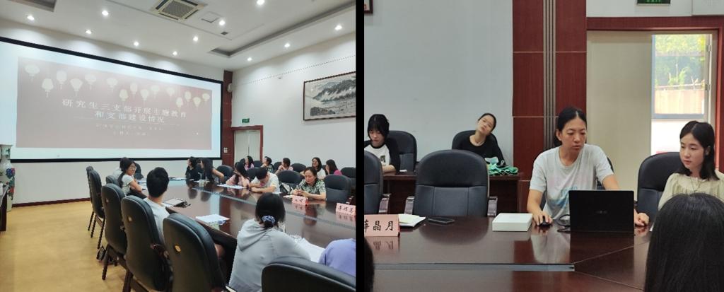 会议第一项,由beat365官方网站党委研究生二支部支部书记高娟同志报告二支部开展主题教育情况和支部建设的情况,高娟同志就二支部情况作简要报告,主要涉及2023年二支部顺利开展各项工作,按时准时召开相关学习活动、按时有序完成发展党员等相关工作。