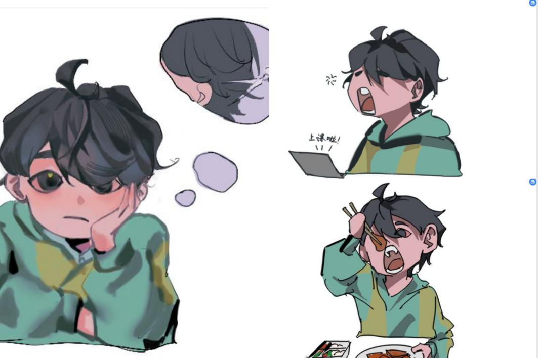 2022CIMA的陈佳音同学以自绘表情包中的小人代表自己,以小人生动可爱的动作表达大学生的生活状态。