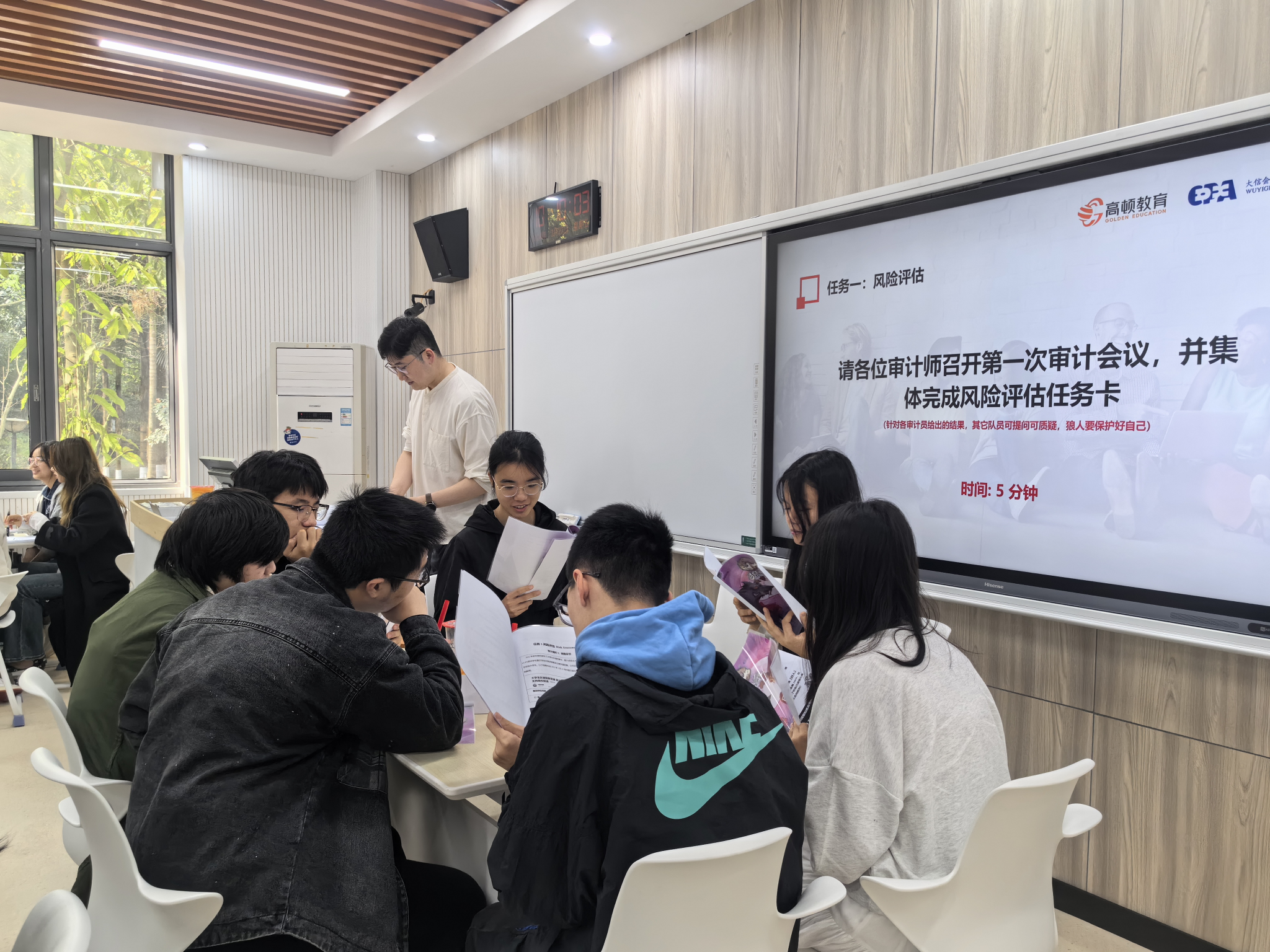 为进一步提升同学们的创新创业素养和专业技能,加深对企业管理运营模式的了解,更好地锻炼团队协作能力,3月22日,beat365官方网站翠湖书院学生社区与大信会计师事务所、高顿教育集团共同举办了创新创业“上市风暴”实训活动,以学生喜闻乐见的剧本杀形式在田家炳108、102多媒体中心演绎“上市风暴”剧本, “沉浸式”探索IPO审计魅力之旅,2022级国际经济与贸易专业、2022级贸易经济专业、2023级经济学实验班90余名同学参加活动。